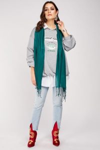 Shawl. This is a large knitted or woven scarf. Traditionally, a shawl is worn thrown over the shoulders, but in case of cold weather, it is thrown over the head, which also looks stylish. A downy shawl is indispensable in winter – it is warm, comfortable and cosy.