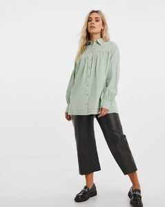 A modern shirt has a straight cut and should not be fitted. For curvaceous ladies, small darts in the chest area are acceptable, but in general, the actual shirt comes without darts, as if taken from a man’s shoulder. Due to the fact that it sits freely, the fabric does not fit the body and does not focus on problem areas.